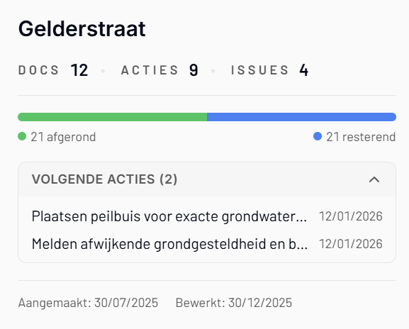 SiteWhiz analyseert je opnames en documenten en stelt automatisch taken, problemen en actiepunten voor. Categorisering, urgentie en verantwoordelijkheden worden voorgesteld. Jij hoeft alleen te bevestigen.